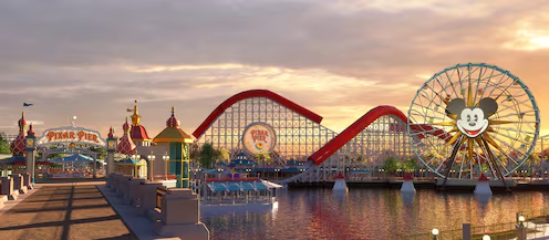 Otra zona imperdible es Pixar Pier, un muelle vibrante lleno de atracciones, juegos y personajes del universo Pixar. Aquí la magia se combina con la nostalgia de las ferias clásicas, pero con un toque moderno.