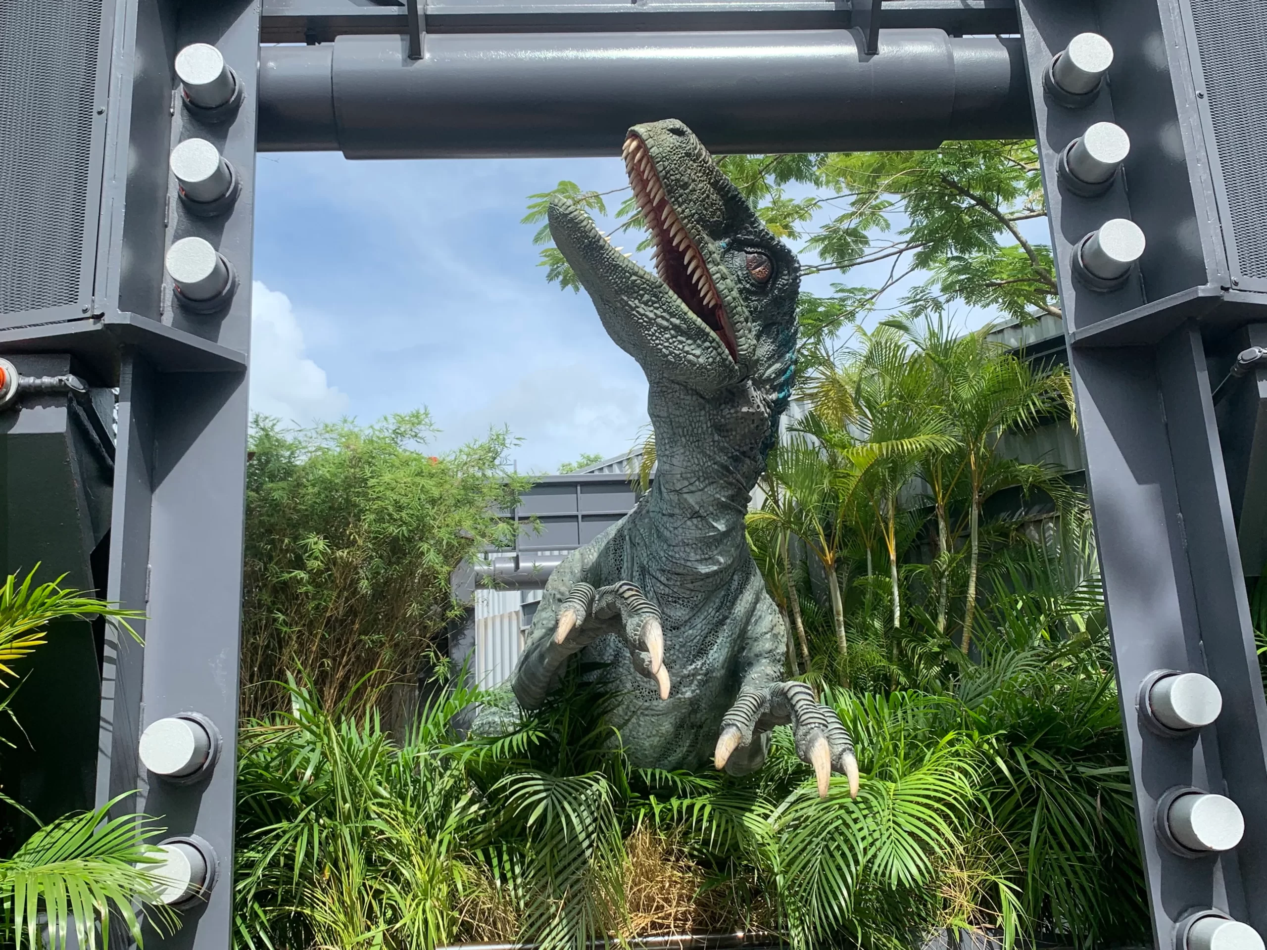 Además de la River Adventure, Jurassic Park ofrece experiencias interactivas que encantan a grandes y chicos. El Raptor Encounter permite ver de cerca a un Velociraptor y sacarse fotos únicas, una de las experiencias más buscadas del parque.