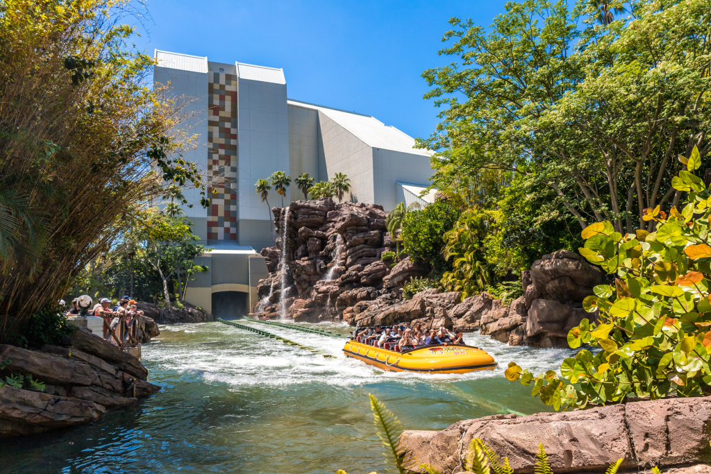 Una falla en el sistema lleva a los visitantes directo al territorio del temido T-Rex, culminando en una impresionante caída de más de 25 metros. Es una experiencia que combina suspenso, emoción y un final refrescante, perfecta para los días calurosos de Orlando.