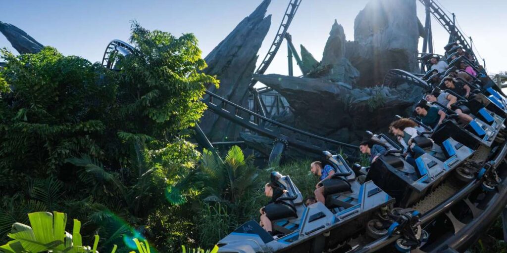 Dentro del área jurásica se encuentra una de las atracciones más impactantes de todo Universal Orlando: Jurassic World VelociCoaster. Esta montaña rusa de alta velocidad está inspirada en el mundo de Jurassic World y es considerada una de las mejores roller coasters del mundo.